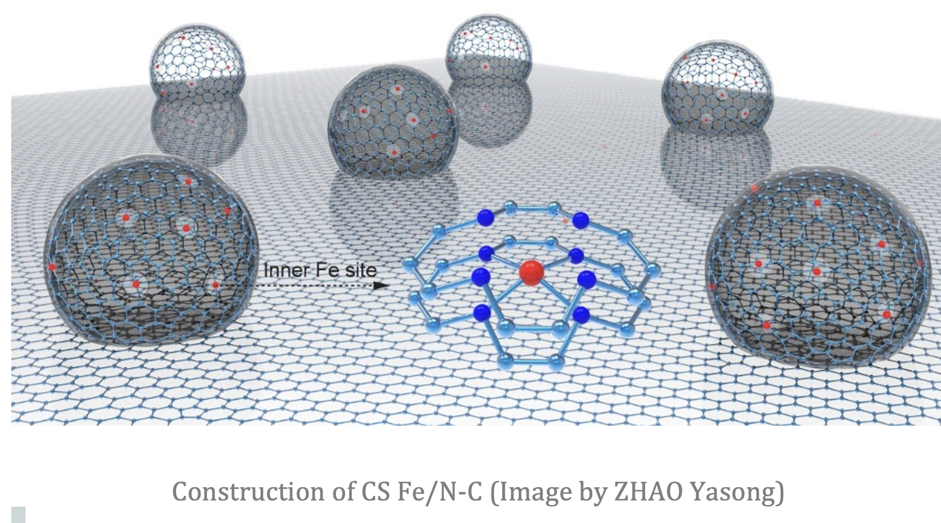 A research team led by Prof. WANG Dan (currently at Shenzhen University) and Prof. ZHANG Suojiang from the CAS Institute of Process Engineering has developed an inner curved-surface single-atom iron catalyst (CS Fe/N-C) with a unique nanoconfined hollow multishelled structure (HoMS). Each nano hollow particle, about 10 nm × 4 nm in size, consists of multiple shells where Fe atoms are concentrated on the inner layers at high density. It not only effectively weakens the binding strength of the oxygenated reaction intermediates but also reduces the hydroxyl radical production rate, forming a distinctive “inner activation, outer protection” microenvironment. The Fe/N-C catalyst delivers one of the best-performing platinum-group-metal-free PEMFCs.