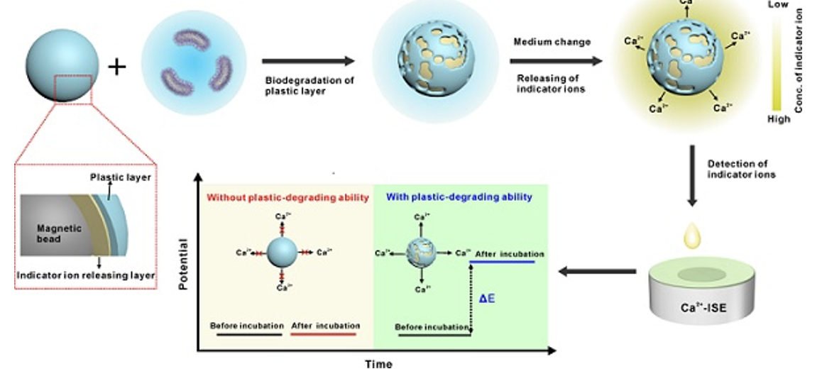 A research team from the CAS Yantai Institute of Coastal Zone Research has proposed a strategy for rapid and quantitative assessment of plastic degradation ability of bacterial strains based on electrochemical sensing, which was used to rapidly identify strains capable of degrading polystyrene. The study combined a polymer membrane ion-selective electrode with magnetic separation technology, utilizing the release of indicator Ca2+ ions caused by plastic degradation by the strain. By sensitively detecting changes in indicator ion concentration, the strain’s plastic degradation efficiency was electrochemically monitored.