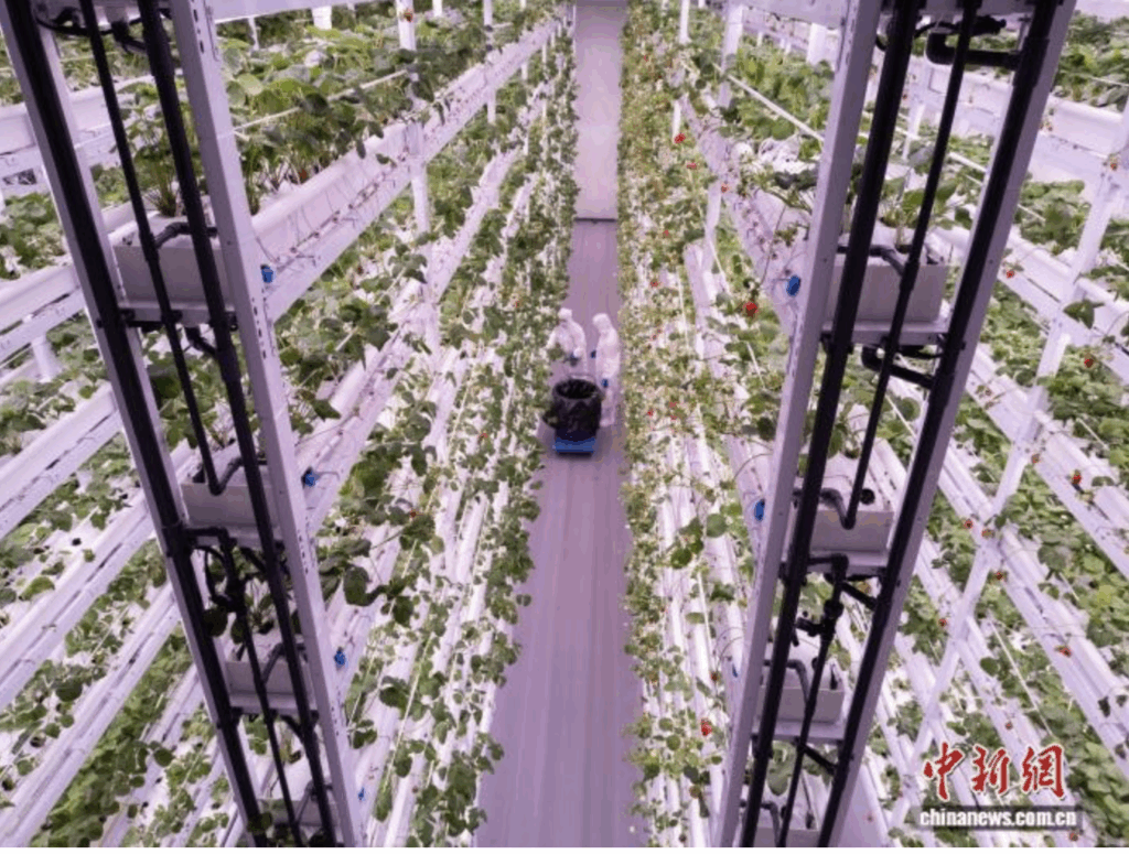 Photo: The largest three-dimensional smart strawberry factory in Southwest China, located in Wenjiang District, Chengdu. Photo by Zhang Lang
