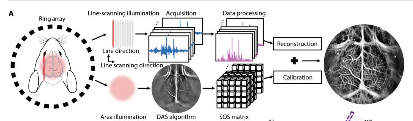 A research team from the Southern University of Science and Technology has developed an integrated photoacoustic imaging system named PACMes which achieves synergistic optimization across three key dimensions: near-infrared optical excitation, low-frequency acoustic detection and computational reconstruction. This approach enables efficient penetration through the intact scalp and skull, reduces interference from light scattering, and ensures high-sensitivity, full-angle detection of photoacoustic signals. It also mitigates acoustic attenuation from biological tissues and suppresses background artifacts, resulting in isotropic high-resolution imaging across the entire field of view.