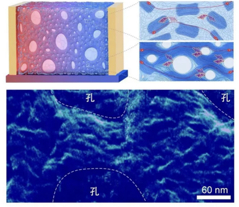 The so-called irregular hierarchical-porous thermoelectric polymer (IHP-TEP) was built from a 70/30 blend of selenium-substituted diketopyrrolopyrrole (PDPPSe-12) with polystyrene which produced an interconnected pore network that ranges from 5.9 nm to 1.8 μm (porosity of 0.23 ± 0.01), with narrow throats (5.0 nm to 1.3 μm) packed with fiber-like domains that exhibit strong molecular orientation. It achieves a ZT value of 1.64 at 343 kelvin (about 70 degrees Celsius), establishing a new benchmark for flexible thermoelectric materials in this temperature range.