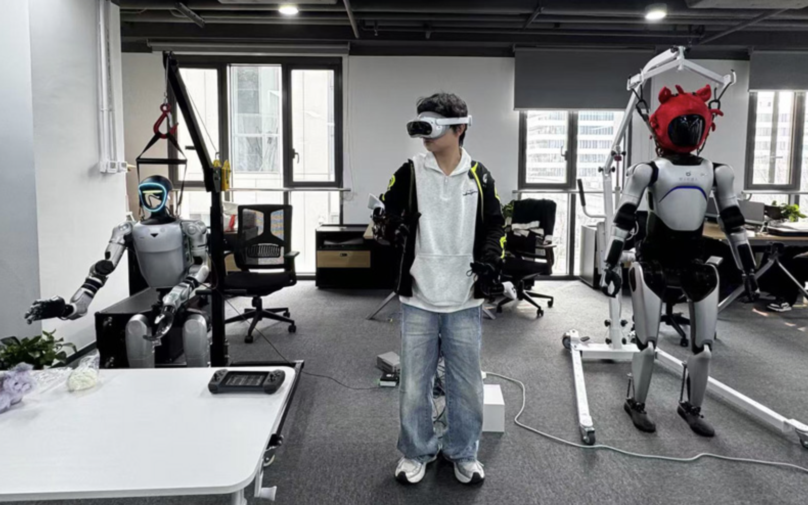 - At Lingyu Technology (Beijing) Co., Ltd., several staff members wearing AR glasses performed grasping actions in virtual space. Traditional data collection requires building real-world scenarios and equipping physical robots, which is costly. Here, a virtual-real fusion collection solution is adopted, building scenarios within a simulated physics engine. Operators wearing VR devices can control virtual robots to complete tasks, significantly reducing enterprise R&D and testing costs and improving model training efficiency.