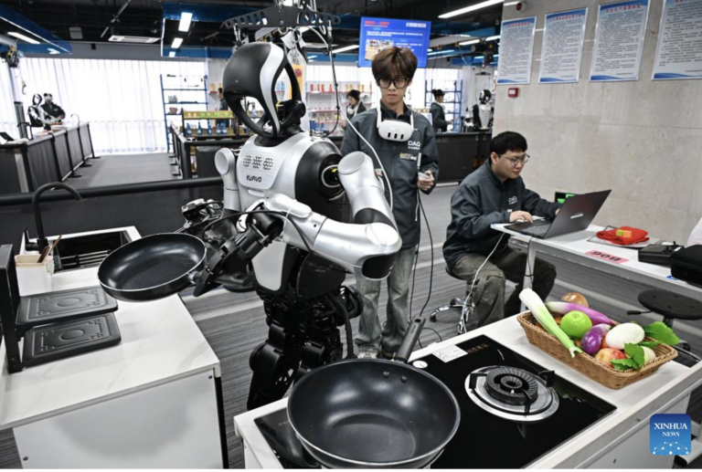 At the Qingdao Humanoid Robot Data Training Center in Laoshan District of Qingdao, humanoid robots are trained for jobs such as intelligent industrial manufacturing, smart home, and commercial services. Data collectors here control robots to complete specific tasks like logistics sorting, supermarket restocking, kitchen operations, and component assembly. Through thousands of repetitions and trials, massive amounts of motion data are generated, endowing robots with a smarter “intelligent brain,” and helping humanoid robots enter all walks of life to serve thousands of households.